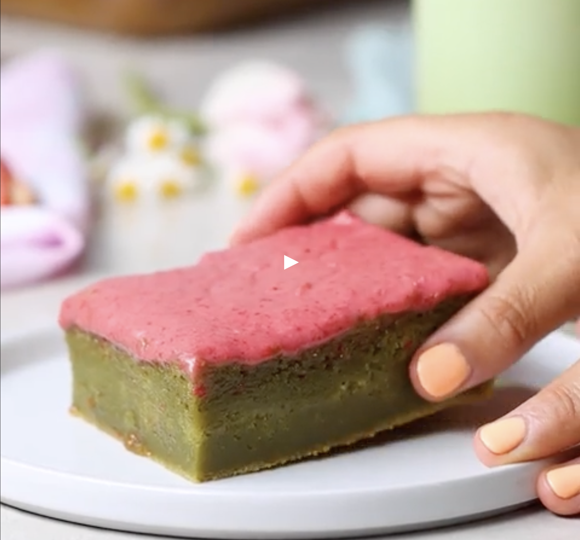 Strawberry Matcha Mochi Butter Cake
